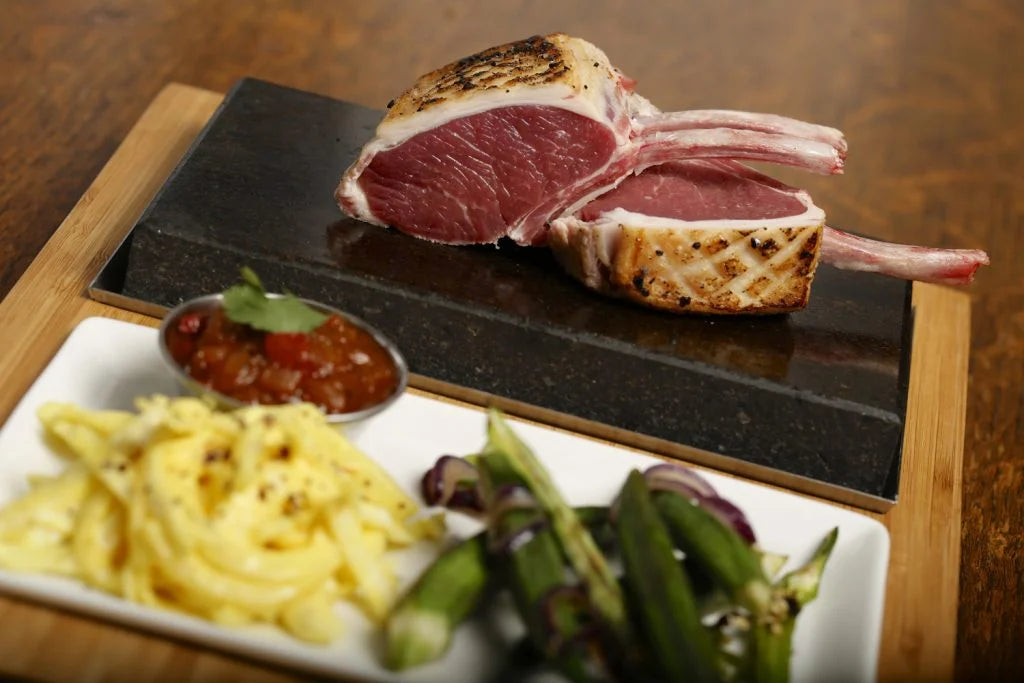 Awaken your inner caveman with a delicious rack of lamb served sizzling on our lava stone. You won’t be able to resist grabbing the bone and searing the outside of the cutlets before tucking in to the piping hot mouthfuls. As with all SteakStones dishes, you can simply style your meals to different cuisines with sides and sauces that reflect your favourite experiences.